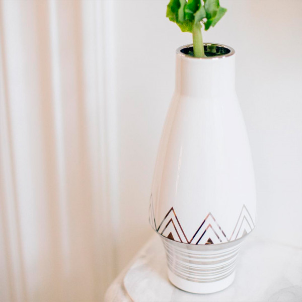 Декоративная ваза "Геометрия" 11х25 см (белый с серебром)